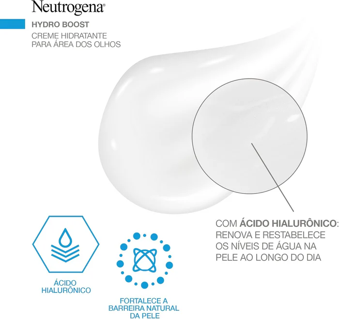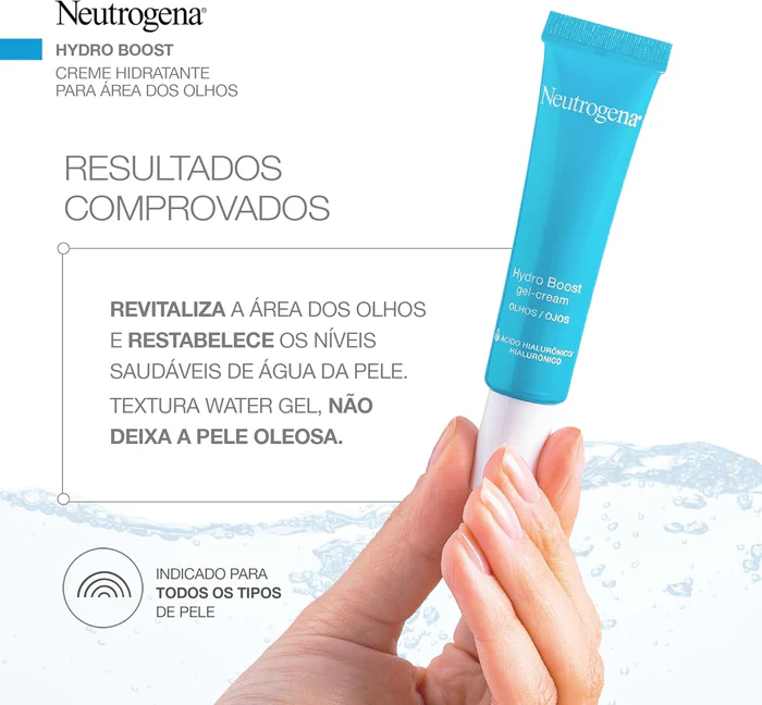 O gel hydro boost water olhos possui textura leve, não oleosa; de rápida absorção; com ácido hialurônico e altas concentrações de glicerina; restabelece os níveis saudáveis de água da pele; revitaliza a área dos olhos.