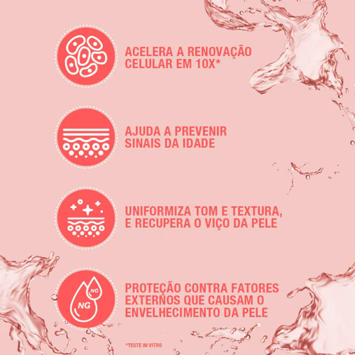 -Acelera a renovação celular em até 10 vezes*: pele mais firme e radiante