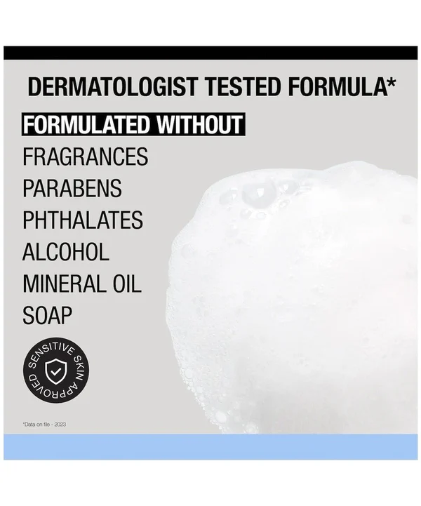 O limpador sem fragrância deixa a pele sensível e reativa com uma sensação de limpeza, instantaneamente renovada e reabastecida.