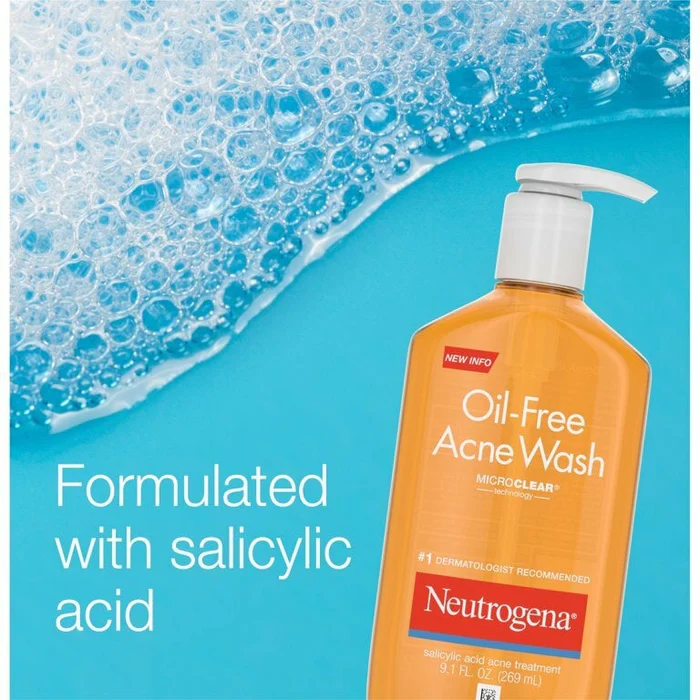 - Oil-Free Acne Face Wash com ácido salicílico para ajudar a tratar acne