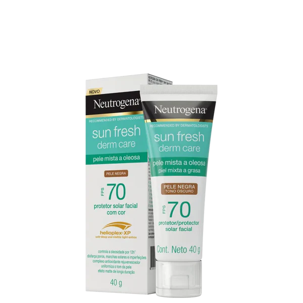 Protetor solar com cor para peles mistas a oleosas. Com textura ultraleve e seca, Sun Fresh FPS 70 Derm Care garante alta proteção e controla a oleosidade por 12 horas.