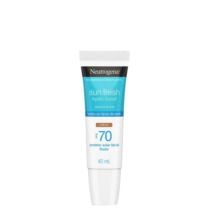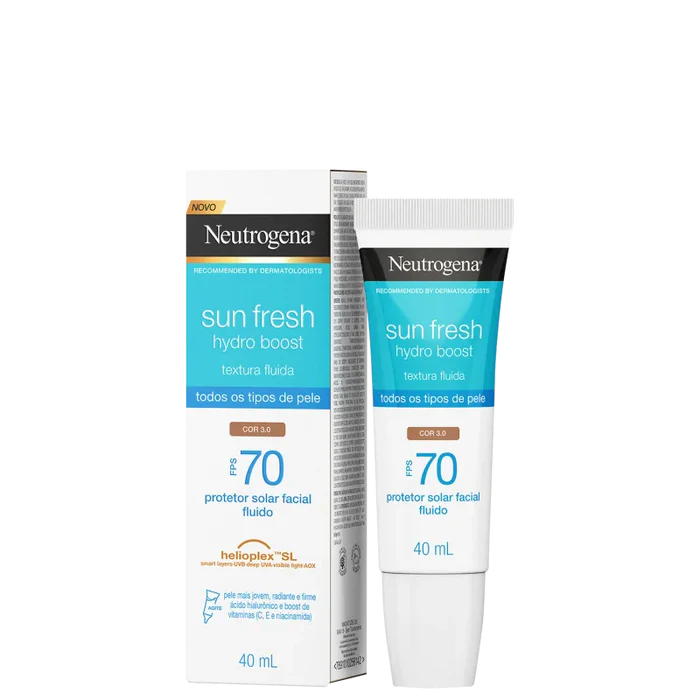 Protetor solar facial com cor para todos os tipos de pele. Sun Fresh Hydro Boost FPS70 possui fator hidratante que protege e reverte os danos solares.